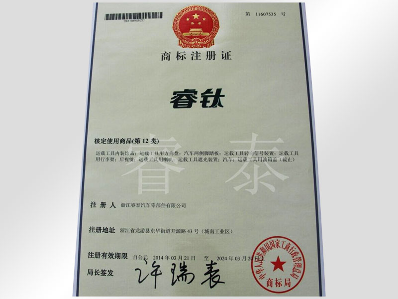 商標(biāo)注冊證書