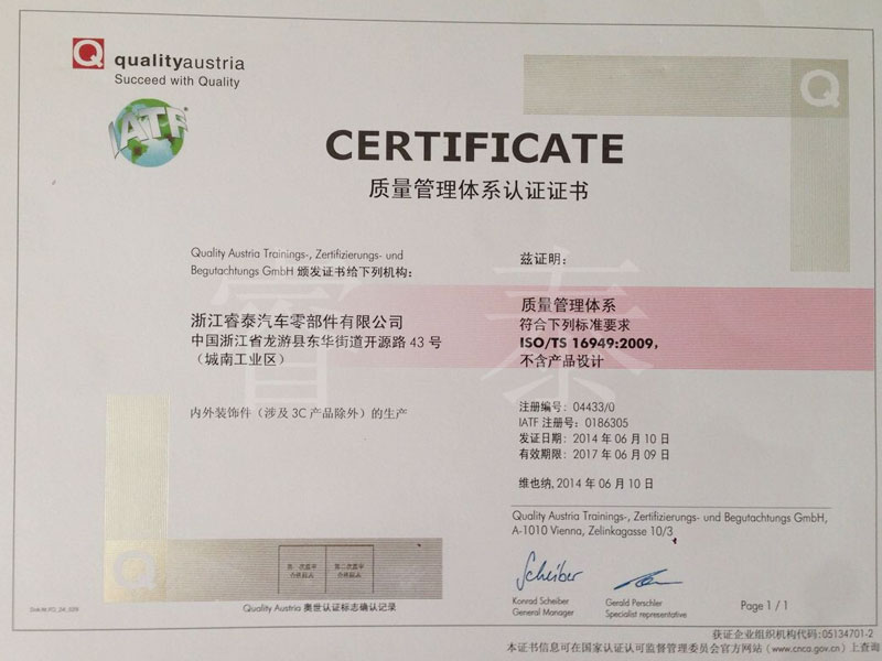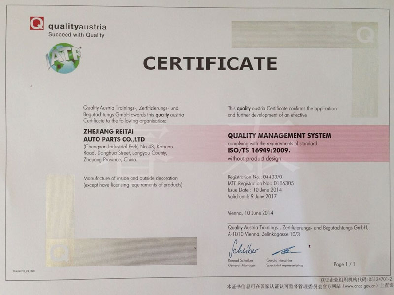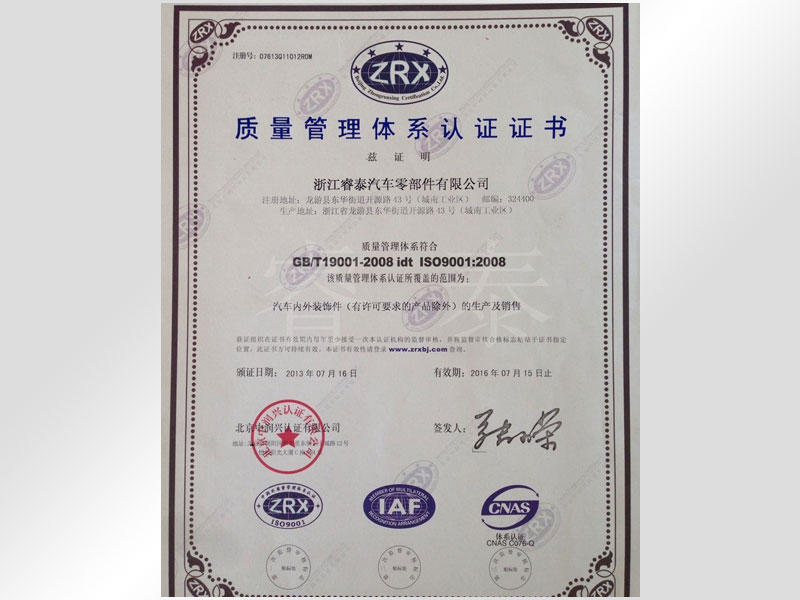 質(zhì)量管理體系認(rèn)證證書14年