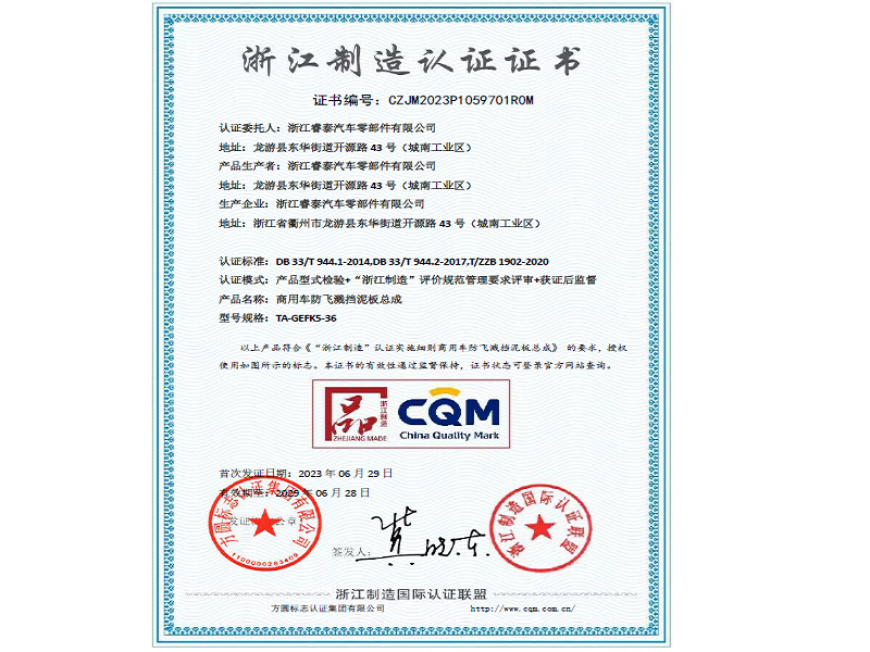浙江制造認(rèn)證證書
